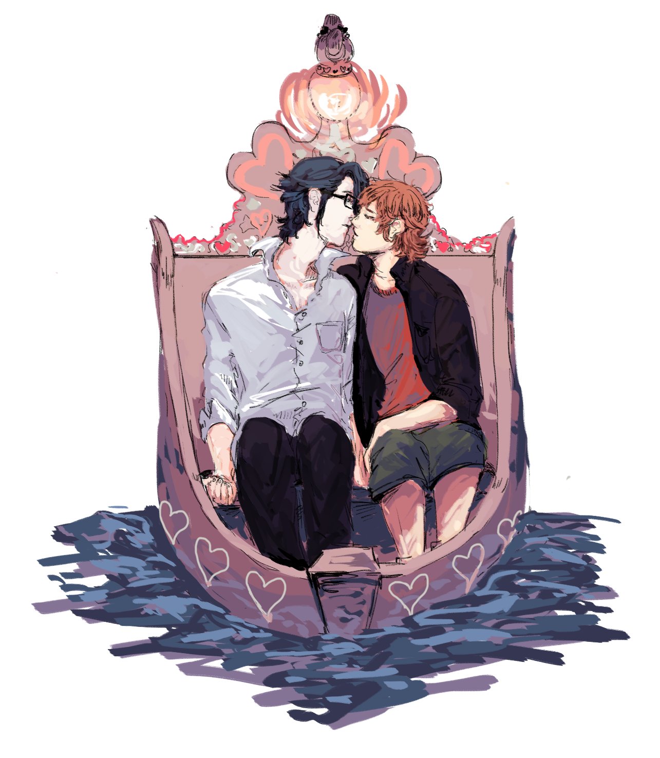 They’d reached the base of the steps leading up to the boat launch. From here, Yata could see the setup clearly: couples disembarked just after coming out of the tunnel, and the boat floated around to the other side – right by the entrance – so that a new pair could board. The lights inside the tunnel had been strategically dimmed, soft flickering lamps set up around the sides to look like candles. The couple directly in front of Hidaka and Saruhiko had just been ushered in, and as they pushed off through the entrance, the tall, wide back of the boat effectively hid them from view.